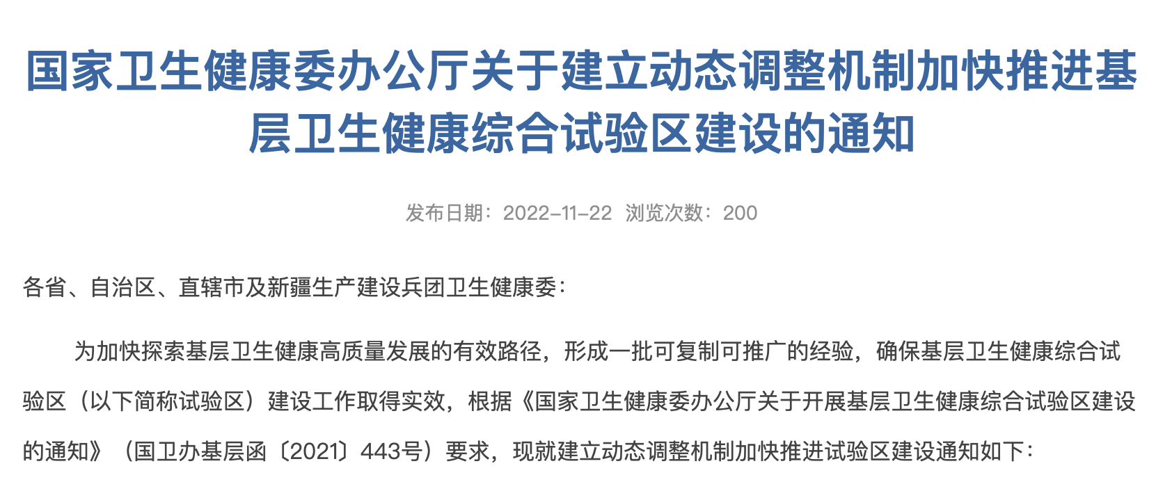 国家卫生健康委办公厅关于建立动态调整机制加快推进基层卫生健康综合试验区建设的通知