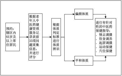 每年为65岁及以上老年人提供1次中医药健康管理服务,内容包括中医体质辨识和中医药保健指导。