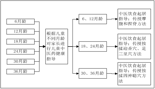 在儿童6、12、18、24、30、36月龄时,对儿童家长进行儿童中医药健康指导,具体内容包括:
